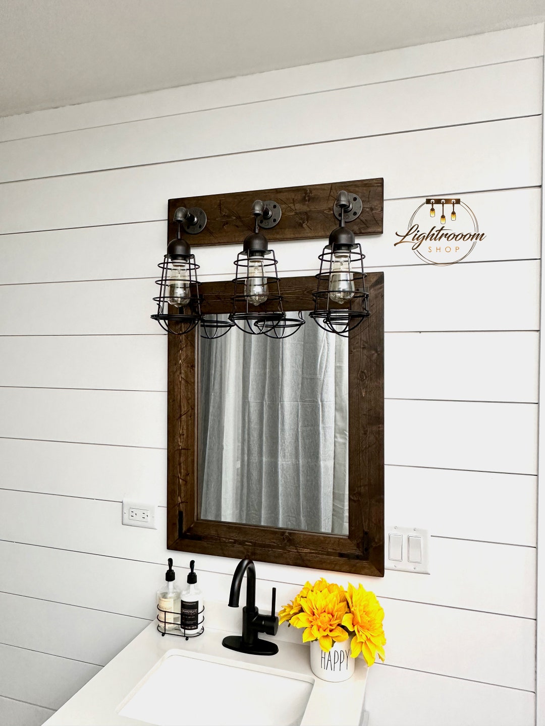 Mirror Light Set Vanity Bathroom Decor Rustic Industrial Etsy
